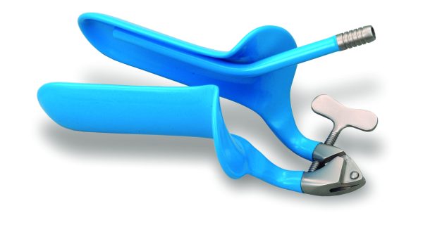 Collin spekulum, large, 12 cm x 4,1 cm blad. Spekula för slyngdiatermikonisering (LETZ/LEEP) i rostfritt stål med en blå, elektriskt isolerande ytbeläggning i nylon och med en integrerad rökutsugskanal. Spekulumslang ESU-502 ansluts till spekulats rökutsugskanal.