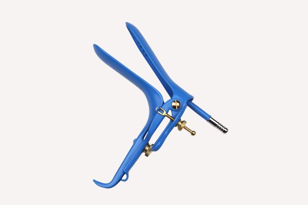 Weissman-Graves öppning åt höger, medium, LETZ-coated spekulum 11 cm x 3,6 cm blad. Spekula för slyngdiatermikonisering (LETZ/LEEP) i rostfritt stål med en blå, elektriskt isolerande ytbeläggning i nylon och med en integrerad rökutsugskanal. Spekulumslang ESU-502 ansluts till spekulats rökutsugskanal.